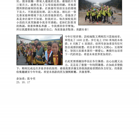 「苗圃助學長征2023-滇冲行」快將接受報名啦!